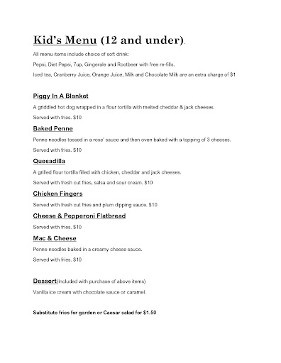 - Kids' menu