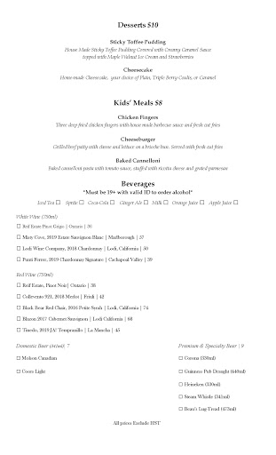 - Kids' menu